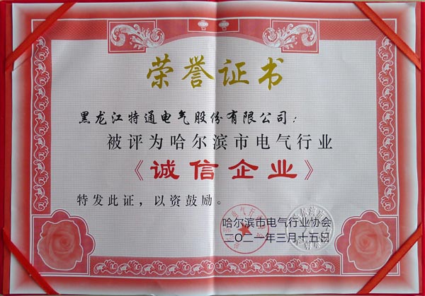 為了推動行業(yè)誠信體系建設,維護行業(yè)信譽,提高企業(yè)知名度,不斷提升行業(yè)產(chǎn)品質(zhì)量水平,為廣大用戶和消費者提供滿意的服務,為此對我市電氣行業(yè)已獲得《誠信企業(yè)》光榮稱號的企業(yè),按規(guī)定要求進行了認真復評審核,通過企業(yè)自查和行業(yè)評定,通過了復評審核,保持了榮譽稱號。特通電氣成為獲此殊榮的復評合格企業(yè)。